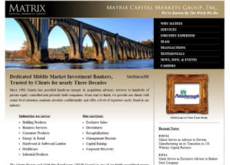 Matrix Capital Markets Group, Inc. is an independent, advisory focused, privately-held investment bank headquartered in Richmond, VA, with additional offices in Baltimore, MD and Chicago, IL. Since 1988, Matrix has provided merger & acquisition and financial advisory services for privately-held, private-equity owned and publicly traded companies, including company sales, recapitalizations, corporate divestitures, corporate recovery, management buyouts, capital raises of debt & equity, corporate valuations and fairness opinions. Matrix has served clients in a wide range of industries, including downstream energy & retail, healthcare, industrial products, building products, lumber, consumer products and business services. For additional information or to contact our team members, please visit www.matrixcmg.com.