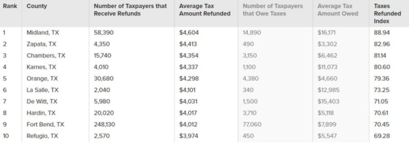 To determine the counties that received the highest average refunds, the study divided the total amount of money refunded by the IRS by the number of refunds given out to residents in each county.