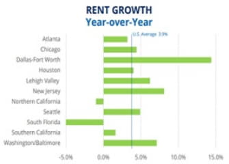 - Dallas recorded the highest annual rent growth at 14.4%.